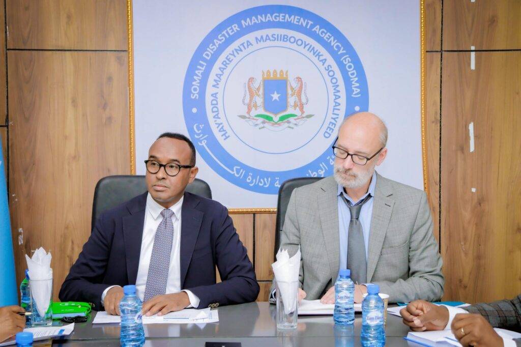 Guddoomiyaha Hay’adda Maareynta Masiibooyinka Qaranka (SoDMA), Maxamuud Macallin Cabdulle, iyo Madaxa Isku-duwidda Gargaar Bani’aadanimo ee Soomaaliya, Mr. Georg Conway, ayaa maanta shirkii billaha ahaa ku yeeshay xarunta dhexe ee SoDMA ee magaalada Muqdisho. Shirkan ayaa diiradda lagu saaray diyaargarowga xaaladaha degdegga ah, gaar ahaan haddii roobabka Deyrta ay yaraadaan, taas oo sababi karta abaaro saameeya bulshada nugul. Sidoo kale, waxaa looga hadlay sidii dhaqaale wadajir ah loogu heli lahaa gudaha iyo dibadda, si wax looga qabto xaaladaha degdegga ah. Kulanka ayaa lagu xusay in dhawaan la aas-aasay Sanduuqa Qaranka ee Dhaqaalaha Bani’aadanimo, oo ay dowladda Federaalka Soomaaliya maamusho, si loo fududeeyo taageerada dadka u baahan iyo jawaabta degdegga ah ee masiibooyinka. Labada dhinac ayaa isku raacay in mudnaanta la siiyo dadka ugu nugul masiibooyinka, isla markaana la adkeeyo iskaashiga dowladda iyo hay’adaha caalamiga ah, si gargaarka bani’aadanimo uu u gaaro meel kasta oo looga baahan yahay, si hufan, cadaalad ah, iyo waqti ku habboon.