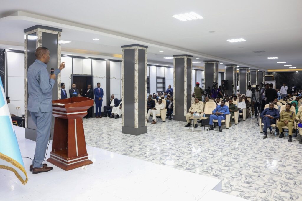 Ra’iisul Wasaaraha Xukuumadda Jamhuuriyadda Federaalka Soomaaliya, Mudane Xamsa Cabdi Barre, ayaa maanta daah-furay qorshaha dib loogu furayo waddooyinka xiran ee caasimadda, oo gaaraya 52 waddo, kuwaas oo 15-kii sano ee la soo dhaafay u xirnaa sababo amni. Ra’iisul Wasaaraha, ayaa sheegay qorshaha furitaanka waddooyinka caasimadda in uu ku yimid isbeddel iyo horumar muuqda oo laga sameeyey amniga caasimadda, taas oo keentay in laga maarmo xirnaanshaha waddooyinka. “Duruuf adag ayaa keentay 15kii sano ee la soo dhaafay in la xiro waddooyinka caasimadda, mushkiladda dhabta ah laguma xallin karo jid la xiro ee waa in lala dagaallamo argagixisada oo la iska dhiciyo, maadaama aysan ahayn bahallo jid gooyo ku istaagaya”. Mudane Xamsa, ayaa xusay in Xukuumadda DanQaran ay dadaal badan galisay sidii loo xaqiijin lahaa amniga caasimadda, iyada oo la sameeyey shuruucdii ilaalinaysay, kana hortagaysay wax walba oo khatar ku ah, sida hubka waaweyn iyo wax walba oo horseedaya amni darro. Ra’iisul Wasaaraha, oo u mahadceliyey guud ahaan hey’adaha amniga, maamulka gobolka Banaadir iyo shacabka ku dhaqan caasimadda Muqdisho, ayaa xusay in amnigu uu yahay mas’uuliyad wadareed ay tahay in cid walba ay doorkeeda ka qaadato sidii loo xaqiijin lahaa.