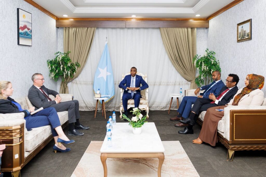 Ra’iisul Wasaaraha Xukuumadda Jamhuuriyadda Federaalka Soomaaliya, Mudane Xamsa Cabdi Barre, ayaa xafiiskiisa ku qaabilay Safiirka dowladda Jarmalka u qaabilsan Soomaaliya, Mudane Sebastian Groth, oo ay ka wada hadleen xoojinta iyo iskaashiga ka dhexeeya labada dal iyo fursadaha maalgashi ee ka jira Soomaaliya.