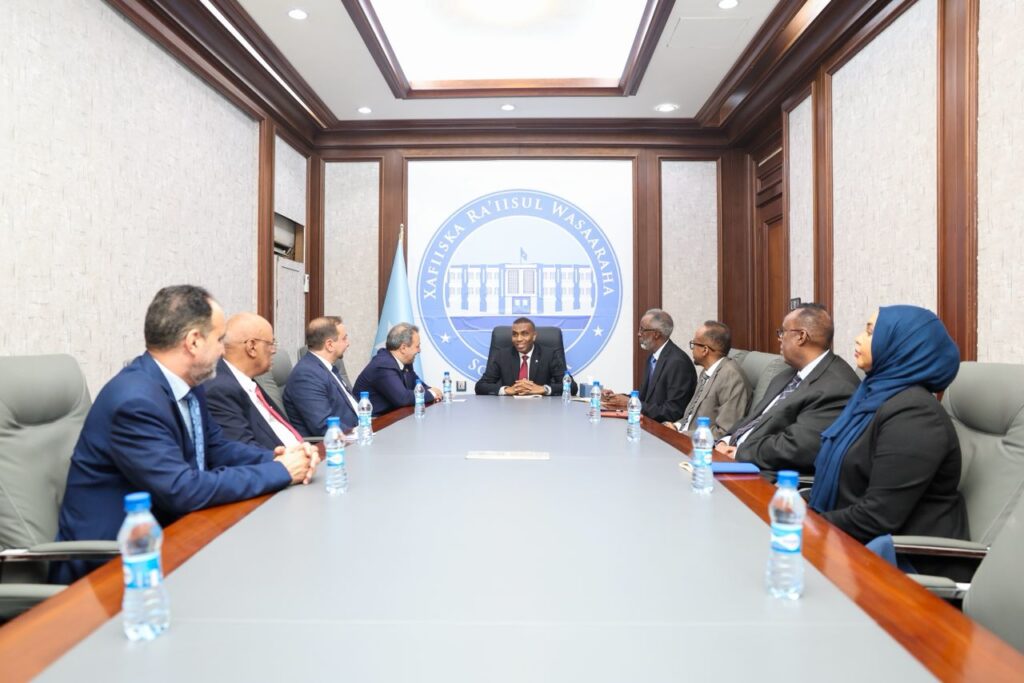 Ra’iisul Wasaaraha Xukuumadda Jamhuuriyadda Federaalka Soomaaliya, Mudane Xamse Cabdi Barre, ayaa maanta qaabilay wafdi sare oo ka socda Ururka Jaamacadda Carabta, kuwaas oo Dalka u yimid hirgelinta mashruuc weyn oo lagu taageerayo Manhajka waxbarashada Dalka iyo horumarinta Afka Carabiga. Ra’iisul Wasaaraha, ayaa uga mahadceliyey Ururka Jaamacadda Carabta, taageeradooda ku aaddan dhinacyada Diblomaasiyadda, waxbarashada, dowlad-dhiska, doorka ay ka qaateen dayn cafinta iyo dhaqaalaha Dalka. Xubnaha ka socday Ururka Jaamacadda Carabta oo uu hoggaaminayo Agaasimaha waaxda Geeska Afrika iyo Suudaan ee Jaamacadda Carabta, Mudane Zayd Al-sabbaan, ayaa bogaadiyey dadaallada dowladda Soomaaliya iyo horumarka ay gaartay, isaga oo tilmaamay muhiimadda ay leedahay kor u qaadista iskaashiga iyo horumarka, siyaasadda, dhaqaalaha iyo wada-shaqeynta.