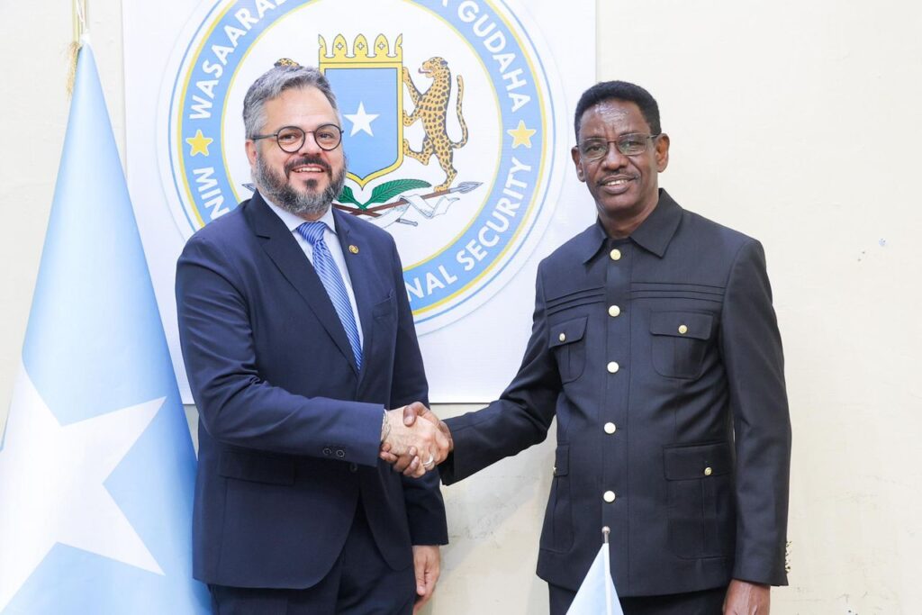 Wasiirka Amniga Gudaha Soomaaliya, Mudane Cabdullaahi Sheekh Ismaaciil Fartaag, ayaa maanta xafiiskiisa ku qaabilay Madaxa Hay’adda IOM ee Qaramada Midoobay, Manual Pereira. Kulankaan ayaa laga hadlay wada shaqeynta Wasaaradda iyo IOM, xoojinta amniga iyo maamulka socdaalka, si loo horumariyo adeegyada la xiriira amniga iyo taageerada bulshada, xuduudaha dalka, iyadoo la isla gartay muhiimadda ay leedahay sugidda iyo casriyeynta nidaamyada ilaalinta xuduudaha. Sidoo kale, arrimaha la isla soo qaaday waxaa kamid ah Tahriibka iyo socdaalka sharci darrada ah, iyadoo IOM iyo Wasaaradda ay isku raaceen in la xoojiyo qorshayaasha ka hortagga tahriibka, iyo taageerada dadka ku soo laabta dalka. Wasiirka Amniga Gudaha ayaa uga mahadceliyey IOM doorka ay ka qaadato taageerada Soomaaliya, isagoo xusay in iskaashiga joogtada ahi uu gacan weyn ka geysan doono sugidda xasilloonida iyo horumarinta nidaamka socdaalka