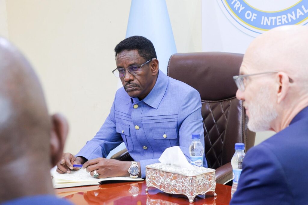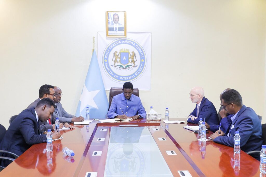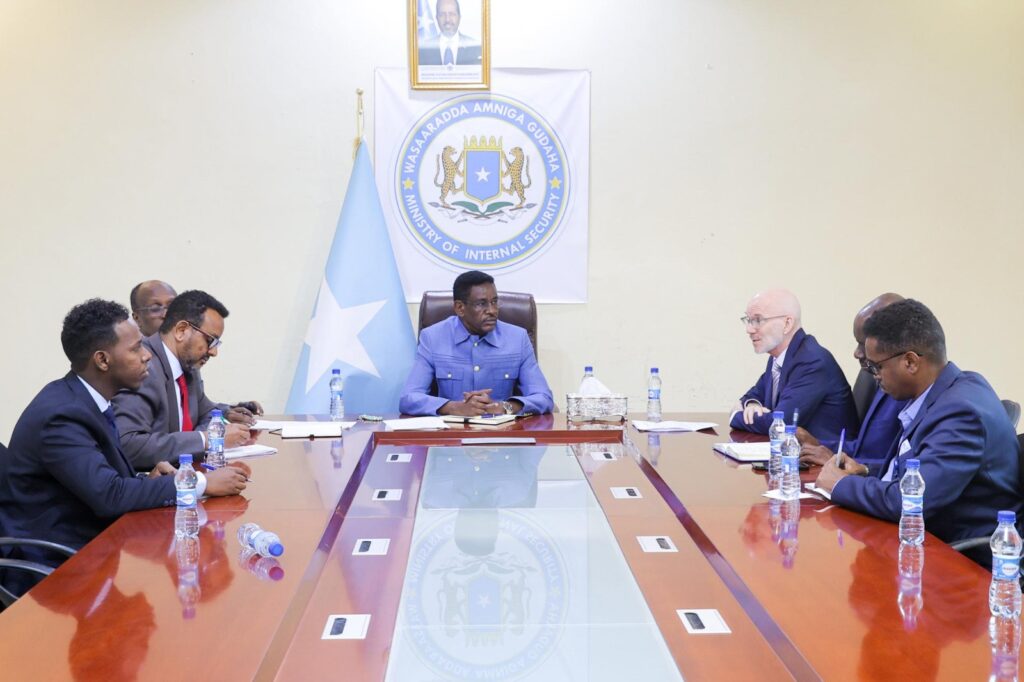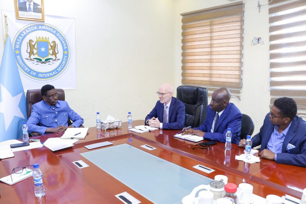 Wasiirka Amniga Gudaha Xukuumadda Federaalka Soomaaliya, Mudane Cabdullaahi Sheekh Ismaaciil (Fartaag), ayaa la kulmay Ergeyga Gaarka ah ee Xoghayaha Guud ee Qaramada Midoobay u qaabilsan arrimaha Soomaaliya Danjire James Swan. Kulanka ayaa looga hadlay arrimo la xiriira amniga iyo iskaashiga ka dhaxeeya hey’adaha Qaramada Midoobay iyo Wasaaradda Amniga, gaar ahaan horumarka laga sameeyey amniga caasimadda, tababarrada ciidanka daraawiishta, dardargelinta wajiga labaad ee barnaamijka JPP iyo ka hor-tagga askareynta carruurta. Wasiirka Amniga Gudaha Jeneraal Cabdullaahi Sheekh Ismaaciil, ayaa uga mahadceliyey danjiraha taageerada kala duwan ee ay siiyaan hey’adaha amniga Dalka, isaga oo xusay muhiimadda ay leedahay in la sii xoojiyo iskaashiga, si loo gaaro horumar wax ku-ool ah oo lagu xaqiijinayo guulaha la gaaray. Dhankiisa, Danjire James Swan ayaa sheegay in sii wadi doonaan taageerada iyo iskaashiga ay la leeyihiin hey’adaha amniga dalka, gaar ahaan arrimaha mudnaanta weyn leh, sida amniga caasimadda iyo xaqiijinta barnaamijyada lagu taageerayo hey’adaha hey’adaha amniga Soomaaliya.