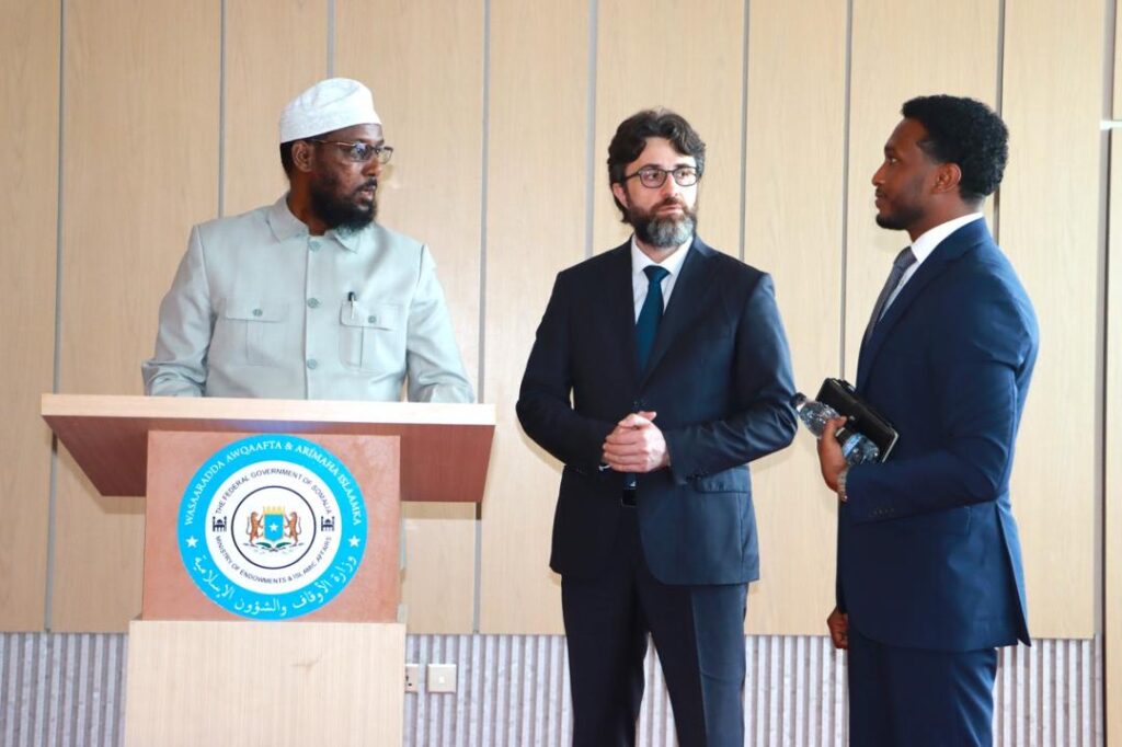 Wasiirka Wasaaradda Awqaafta iyo Arrimaha Islaamka ee XFS, Mudane Sheekh Mukhtaar Roobow Cali, ayaa xafiiskiisa ku soo dhaweeyey wefdi ka socda Dowladda Turkiga, oo uu horkacayo Safiirka Turkiga ee u jooga Soomaaliya, Alper Aktas, iyo Uqeybsanaha Arrimaha Diinta Turkey, Cumar Faaruq Arslan. Ujeedada booqashada wefdigan ee Wasaaradda Awqaafta iyo Arrimaha Islaamka ayaa la xiriirta iskaashiga walaaltinimo ee ka dhexeeya Soomaaliya iyo Turkiga, iyo sidii kor loogu qaadi lahaa awooda adeegyada maamul ee wasaaradda. Wasiirka, Mudane Mukhtaar Roobow, ayaa ka mahadceliyey booqashada masuuliyiinta ka socotay Turkiga iyo sida ay garab taagan yihiin. Safiirka Turkiga, Alper Aktas, ayaa dhankiisa sheegay in wadashaqeynta uu la leeyahay Wasaaradda Awqaafta iyo Arrimaha Islaamka ay xoojin doonto, isla markaana ka caawin doonto dhanka tababarada iyo kor u qaadista aqoonta iyo khibrada shaqaalaha. Ugu dambeyn, Safiirka Dowladda Turkiga, Alper Aktas, ayaa ka mahadceliyey sida loogu soo dhaweeyey xarunta Wasaaradda Awqaafta iyo Arrimaha Islaamka.