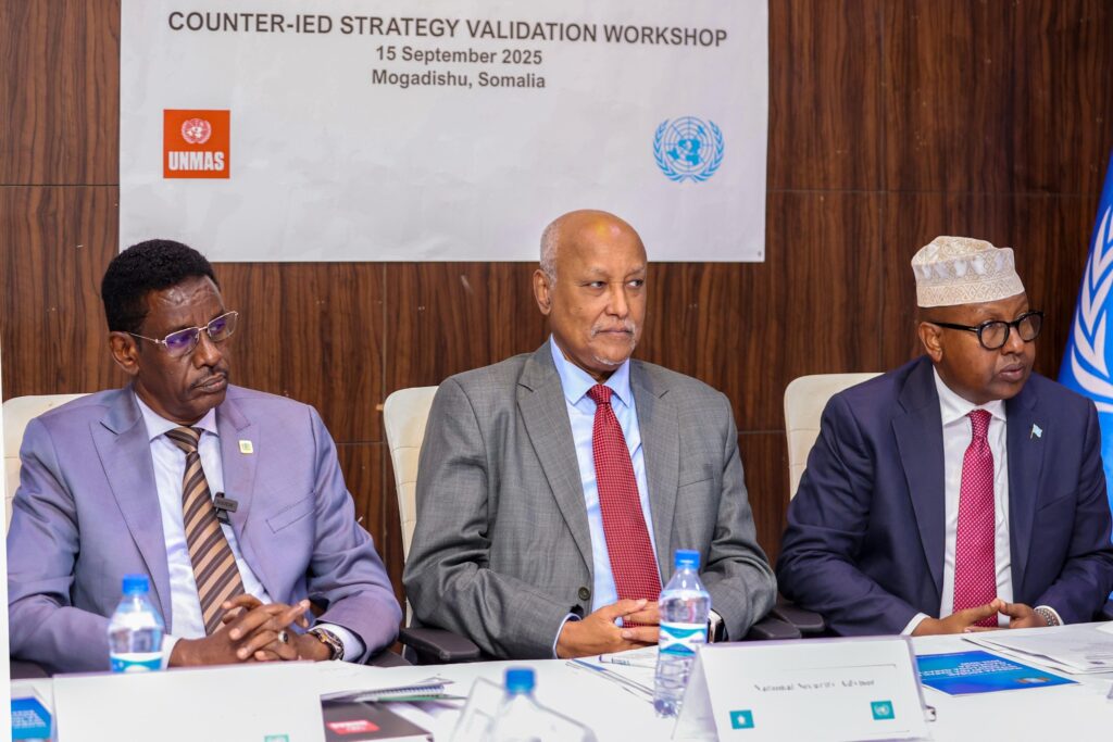 MUQDISHO, 15 Sebtembar 2025:qabtay kulanka ansixinta Istaraatiijiyadda Qaranka ee Ka-hortagga Qaraxyada Macmalka ah (C-IED). Waxaa kasoo qayb galay Wasiirka Gaashaandhigga, Mudane Axmed Macalin Fiqi, Wasiirka Amniga Gudaha, Gen. Cabdullaahi Sheekh Ismaaciil, La-taliyaha Amniga Qaranka, Danjire Aweys Xaaji Yuusuf, saraakiil ka socday Ciidanka Xoogga Dalka, Booliska, iyo Nabad-sugida Qaranka, iyo xubno ka socday wasaaradaha shaqada ku leh qorshahan. Sidoo kale, shirka waxaa goob joog ka ahaa safiiradda dalalka saaxiibka ah ee Maraykanka, Boqortooyadda Ingiriiska, Midowga Yurub, Wakiilka Gaarka ah ee Qaramada Midoobey ee Soomaaliya (SRSG), AUSSOM, iyo saaxiibada kale ee Soomaaliya ka taageera dhinaca nabad-galyada. Wasiirka Difaaca, Mudane Axmed Macalin Fiqi, oo furitaanka shirkan muhiimka ah ka hadlay, ayaa sheegay muhiimadda ay leedahay taageerada saaxiibada caalamiga ah. Wuxuu xusay in helitaanka qalab casri ah iyo dhamaystirka istaraatiijiyaddan Qaran ay yihiin labo tiir oo is dhexgalaya, kuwaas oo sare u qaadaya awoodda ciidankeena iyo kalsoonida shacabka Soomaaliyeed. Wasiirka Amniga Gudaha, Gen. Cabdullaahi Sheekh Ismaaciil, ayaa dhankiisa yiri: “Istaraatiijiyaddan waa mid taariikhi ah oo si cad u qeexaysa kaalinta sharci, hay’adeed, iyo farsamo ee Soomaaliya ku wajahayso khatarta qaraxyada. Waxay dhabbaha u xaaraysaa nidaam mideysan oo ilaalinaya shacabka Soomaaliyeed.” La-taliyaha Amniga Qaranka, Danjire Aweys Xaaji Yuusuf, ayaa sheegay in istaraatiijiyad qoran ay tahay ballanqaad qaran oo muujinaya hoggaanka iyo wadajirka lagu doonayo in looga hortago qaraxyada macmalka ah. Wuxuu kaloo tilmaamay inuu kalsooni buuxda ku qabo saaxiibada caalamka inay ku garab istaagaan hirgalinta qorshahan qaran. Safiiradda dalalka Maraykanka iyo Ingiriiska u jooga Soomaaliya, Wakiilka QM ee arrimaha Soomaaliya, iyo saaxiibada caalamka ee shirka kasoo qayb galay ayaa isku raacay in qorshahan uu wax weyn ka beddeli doono howl-gallada ka hortaga qaraxyada iyo xoojinta dadaalada ay dowladda Soomaaliya ka wado gudaha dalka. Kulankan ayaa lagu ansixiyay qoraalka istaraatiijiyadda, taasoo loo arko tallaabo weyn oo Soomaaliya u qaaday dhanka isku dubbaridka amniga, iyadoo qorshe howleedyo gaar ah lagu dabaqi doono heer Federaal iyo heer Dowlad-Goboleed si loo xaqiijiyo fulinta istaraatiijiyadda.